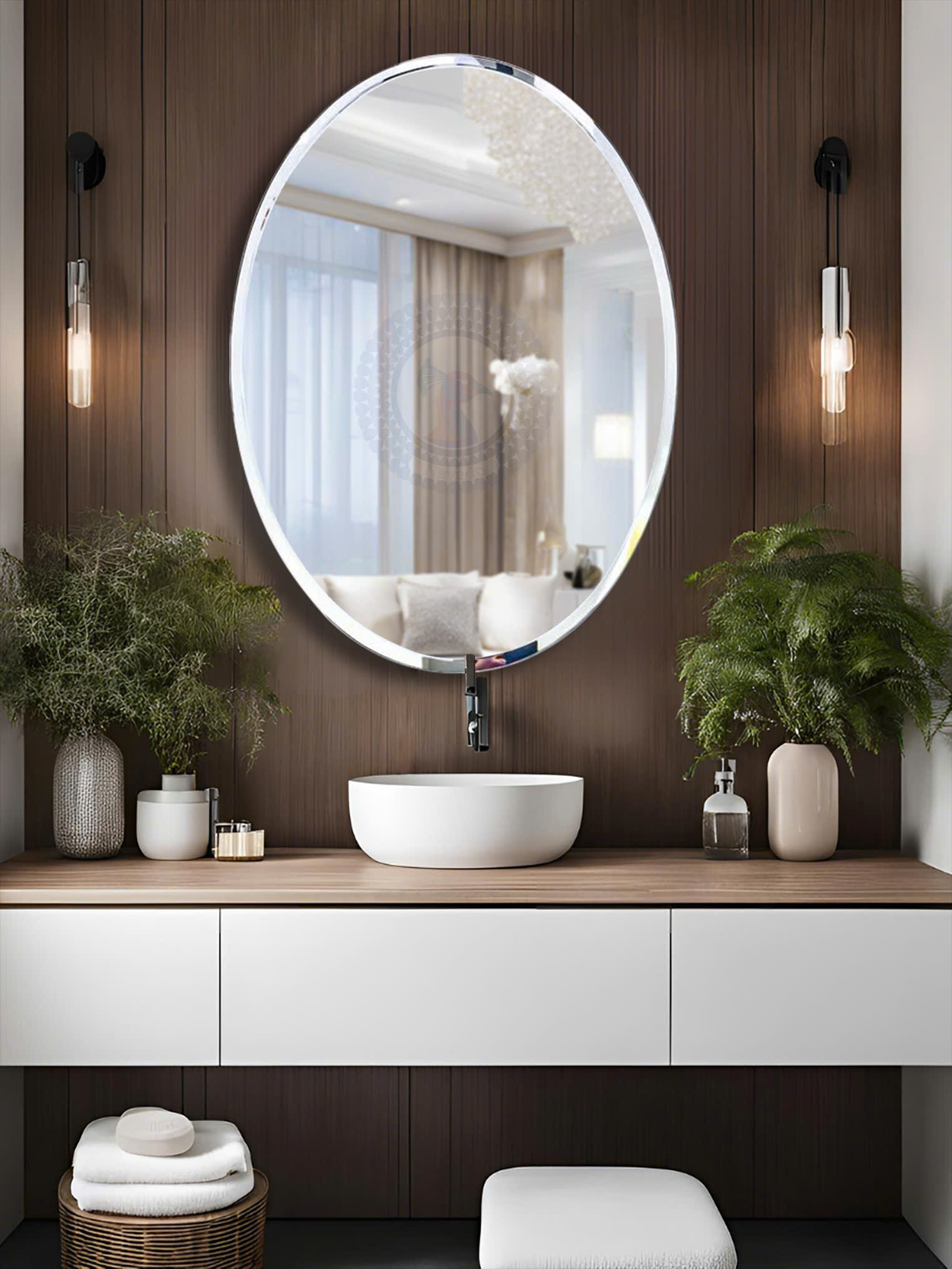 Tên sản phẩm: Gương nhà tắm hình elip mài vát NAV 110